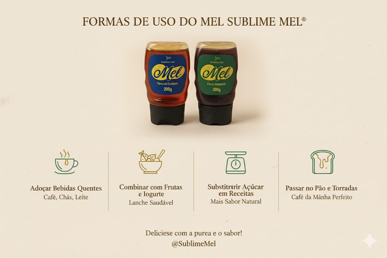 Este combo exclusivo da Sublime Mel® traz duas bisnagas práticas de 200g cada, produzidas de forma artesanal, direto do apicultor, sem adição de açúcares, conservantes ou aquecimento no processo.